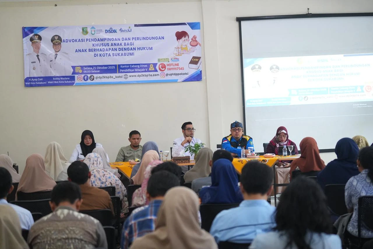 KABARINDAH.COM, Sukabumi–Pemkot Sukabumi melalui Dinas Pengendalian Penduduk, KB, Pemberdayaan Perempuan dan Perlindungan Anak (DP2KBP3A) bekerja sama dengan Kantor Cabang Dinas Pendidikan (KCD) Wilayah V Provinsi Jawa Barat, menggelar kegiatan advokasi pendampingan dan perlindungan anak berhadapan dengan hukum pada Selasa (21/10/2025). Langkah ini dalam mendorong sekolah yang ramah anak.