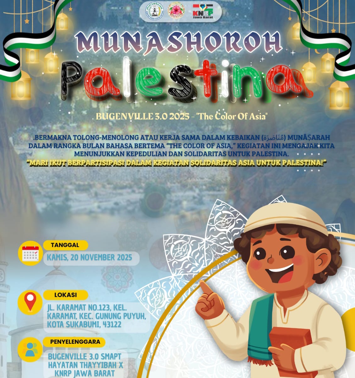 KABARINDAH.COM, Sukabumi–SMA Pesantren Terpadu Hayatan Thayyibah menyelenggarakan Bulan Bahasa 3.0 pada Kamis (20/11/2025). Sebuah perayaan tahunan yang memadukan literasi, seni, budaya, dan kepedulian sosial yang mengangkat tema “The Colors of Asia: A Symphony of Language, Culture, and Solidarity”.
