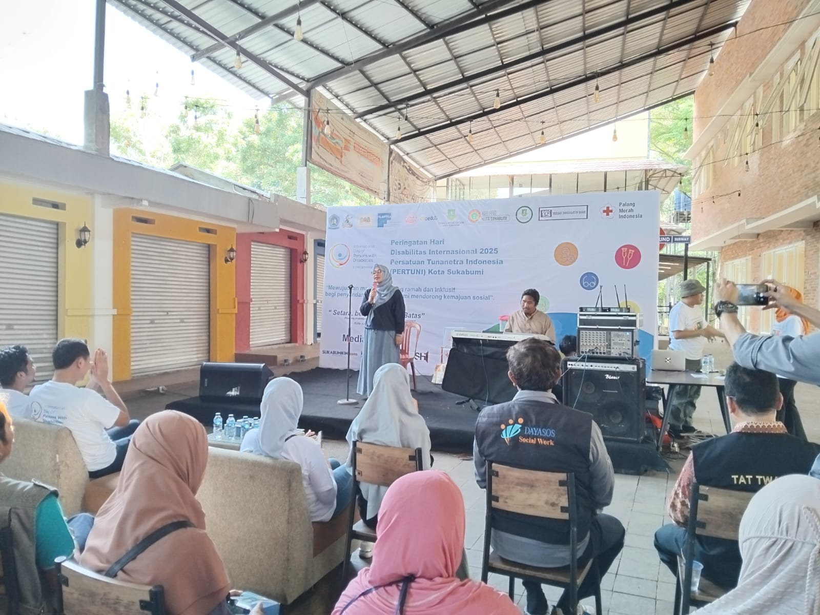 KABARINDAH.COM, Sukabumi–Peringatan Hari Disabilitas Internasional tahun 2025 digagas Persatuan Tunanetra Indonesia (Pertuni) Kota Sukabumi di Santasea Water Theme Park Sukabumi pada Ahad (7/12/2025). Momen ini sebagai bentuk kemandirian Pertuni dalam menggelar kegiatan dan mendorong pemerintah untuk memberikan akses ke segala bidang bagi penyandang disabilitas.