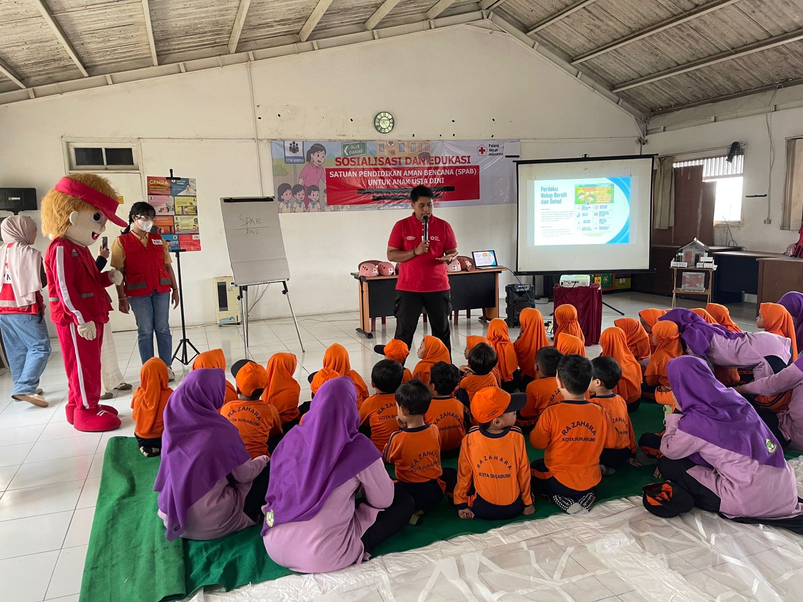 KABARINDAH.COM, Sukabumi- Suasana ceria terlihat sejak pagi ketika siswa siswi Raudhatul Athfal (RA) Zahara Kota Sukabumi melakukan kunjungan edukasi mengikuti kegiatan Sosialisasi dan Edukasi Satuan Pendidikan Aman Bencana (SPAB) di Markas PMI Kota Sukabumi. Dengan seragam oranye cerah, para siswa tampak antusias semangat dan ceria menyimak materi yang dibawakan para relawan PMI Kota Sukabumi