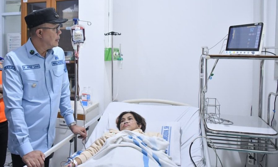 KABARINDAH.COM, Sukabumi–Wali Kota Sukabumi Ayep Zaki, menjenguk Pekerja Migran Indonesia (PMI) asal Kota Sukabumi Lanti (46 tahun), yang sempat tertahan di China akibat sakit yang kini dirawat di ke RSUD R Syamsudin, SH, Jumat (30/1/2026). Kehadiran wali kota menjadi bentuk kepedulian Pemkot Sukabumi terhadap warganya, khususnya pekerja migran yang mengalami persoalan di luar negeri.