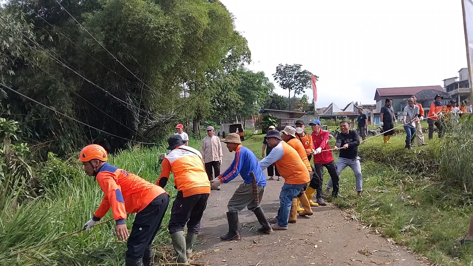Berkat kerja sama dan kekompakan warga serta relawan, material longsor berupa dapuran bambu berhasil dievakuasi dengan cepat sehingga ancaman terhadap rumah warga dapat diatasi.