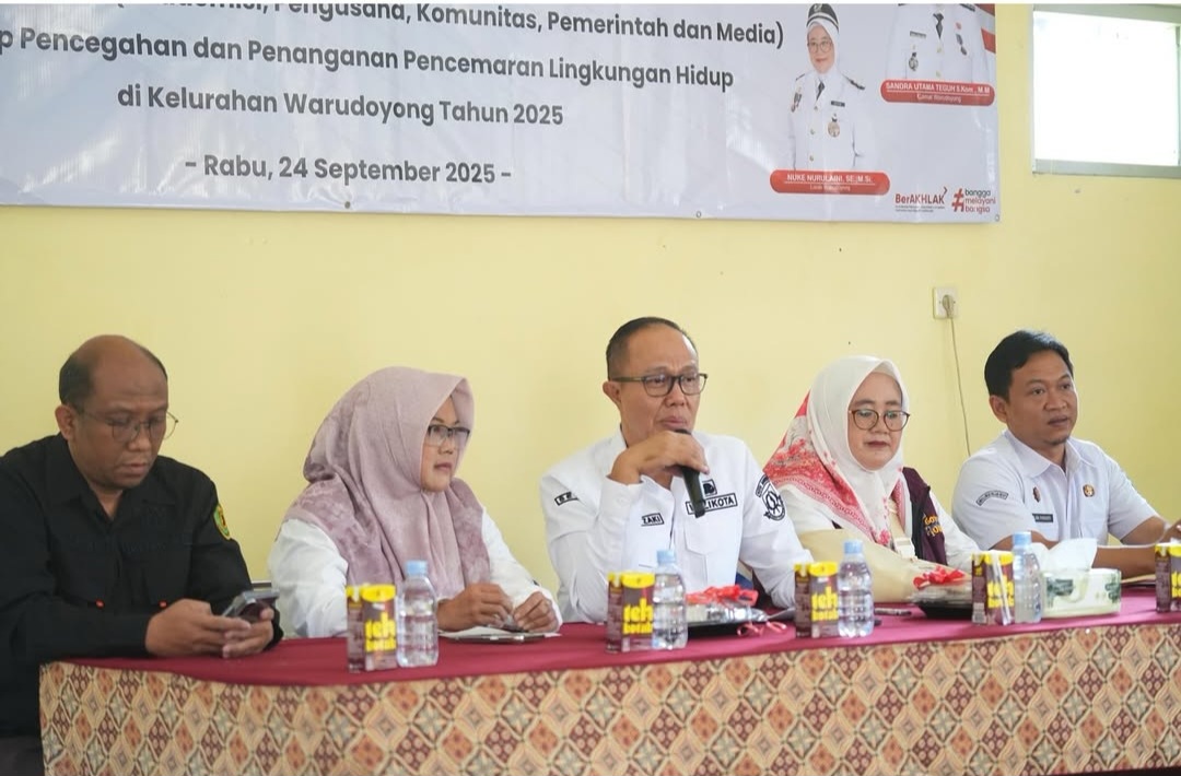 KABARINDAH.COM, Sukabumi–Beragam cara dilakukan untuk mencegah pencemaran lingkungan hidup di wilayah. Salah satunya digagas Kelurahan/Kecamatan Warudoyong, Kota Sukabumi yang menggelar pelatihan dengan tema Kolaborasi Pentahelix terhadap Pencegahan dan Penanganan Pencemaran Lingkungan Hidup di Ruang Pertemuan Kelurahan Warudoyong, Rabu (24/9/2025)
