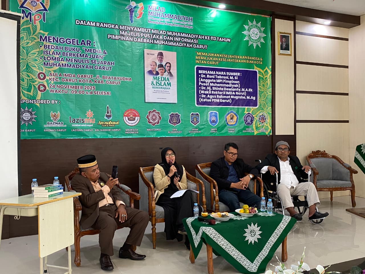 KABARINDAH.COM, Garut – Majelis Pustaka dan Informasi (MPI) Pimpinan Daerah Muhammadiyah (PDM) Garut menggelar bedah buku “Media & Islam Berkemajuan” karya Roni Tabroni pada Senin (24/11/2025) di Aula Institut Muhammadiyah Darul Arqam (IMDA) Garut, Jalan Bratayudha, Garut Kota. Acara ini menjadi salah satu rangkaian kegiatan Milad ke-113 Muhammadiyah.
