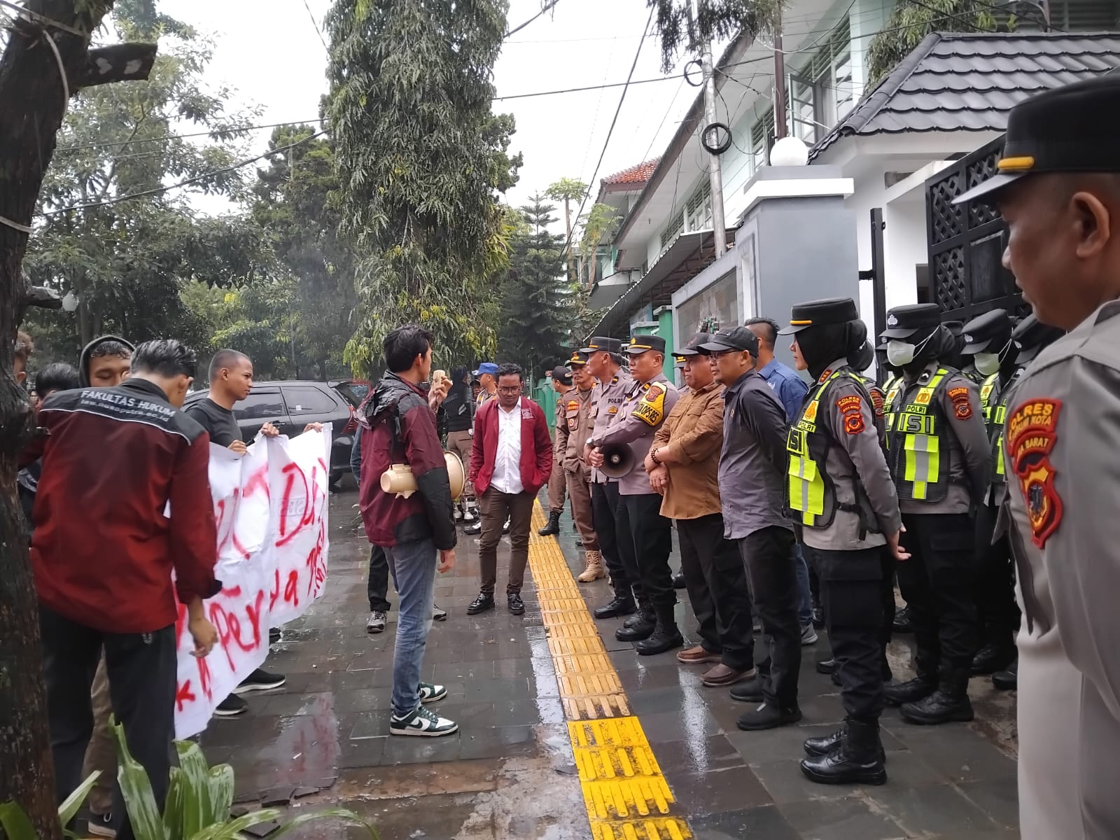 Meski Diguyur Hujan, Ketua DPRD Kota Sukabumi Terjun Langsung Temui Aksi Mahasiswa Himakum