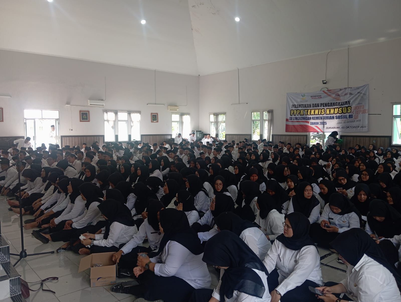 Prosesi berlangsung khidmat, termasuk di Kabupaten Sukabumi yang memusatkan kegiatan pelantikan di Sentra Phalamarta, Kecamatan Cibadak. Ratusan PPPK yang dilantik di Sukabumi terdiri dari pendamping Program Keluarga Harapan (PKH), Tenaga Kesejahteraan Sosial Kecamatan (TKSK), serta tenaga pendamping rehabilitasi sosial yang bertugas di berbagai sentra dan balai di bawah Kementerian Sosial.