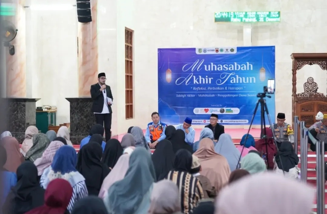KABARINDAH.COM, Sukabumi–Beragam cara dilakukan mengisi malam pergantian tahun dengan cara yang penuh makna. Salah satunya tergambar dalam kegiatan Muhasabah Akhir Tahun 2025 bertajuk “Refleksi, Perbaikan, dan Harapan” yang dirangkaikan dengan Tabligh Akbar, Muhasabah, serta Penggalangan Dana Sosial di Masjid Agung Kota Sukabumi, Rabu (31/12/2025) malam.