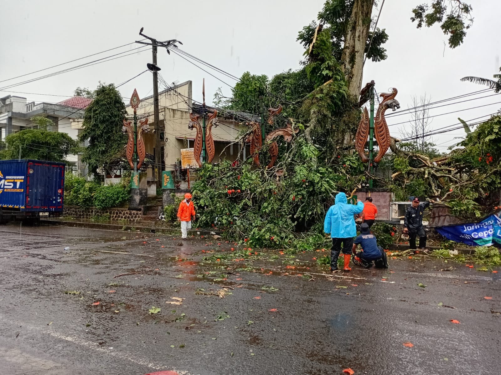 “Setelah menerima laporan, tim langsung menuju lokasi dan melakukan pengecekan. Benar telah terjadi pohon tumbang di samping Perpustakaan dan Kantor Kelurahan Cikundul,” kata Yosep. Ia menjelaskan, tumbangnya pohon tersebut mengakibatkan patahnya tiang listrik bertegangan tinggi sehingga menyebabkan pemadaman listrik di wilayah sekitar lokasi kejadian.
