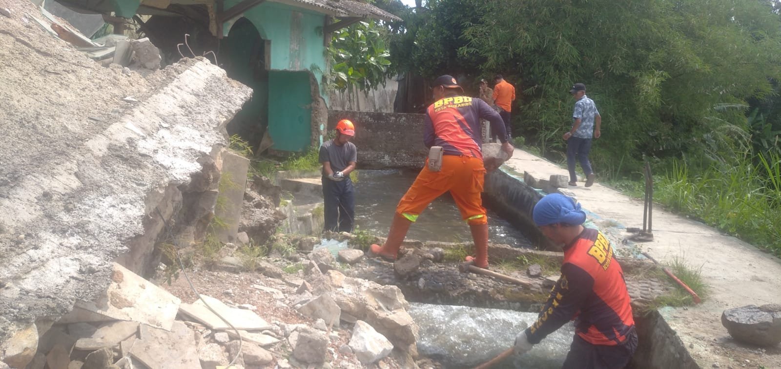 TPT Ambruk di Lembursitu Sukabumi, Satu Rumah Rusak dan Saluran Irigasi Tersumbat